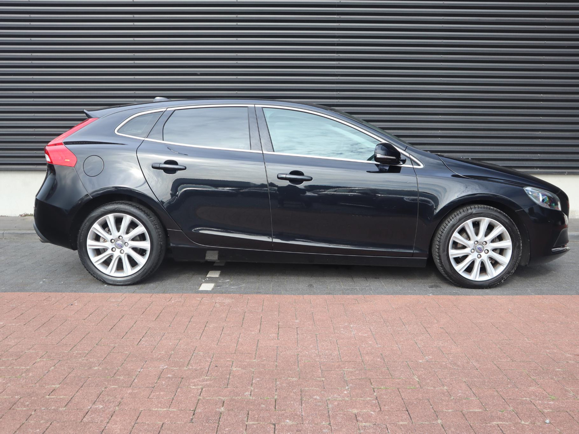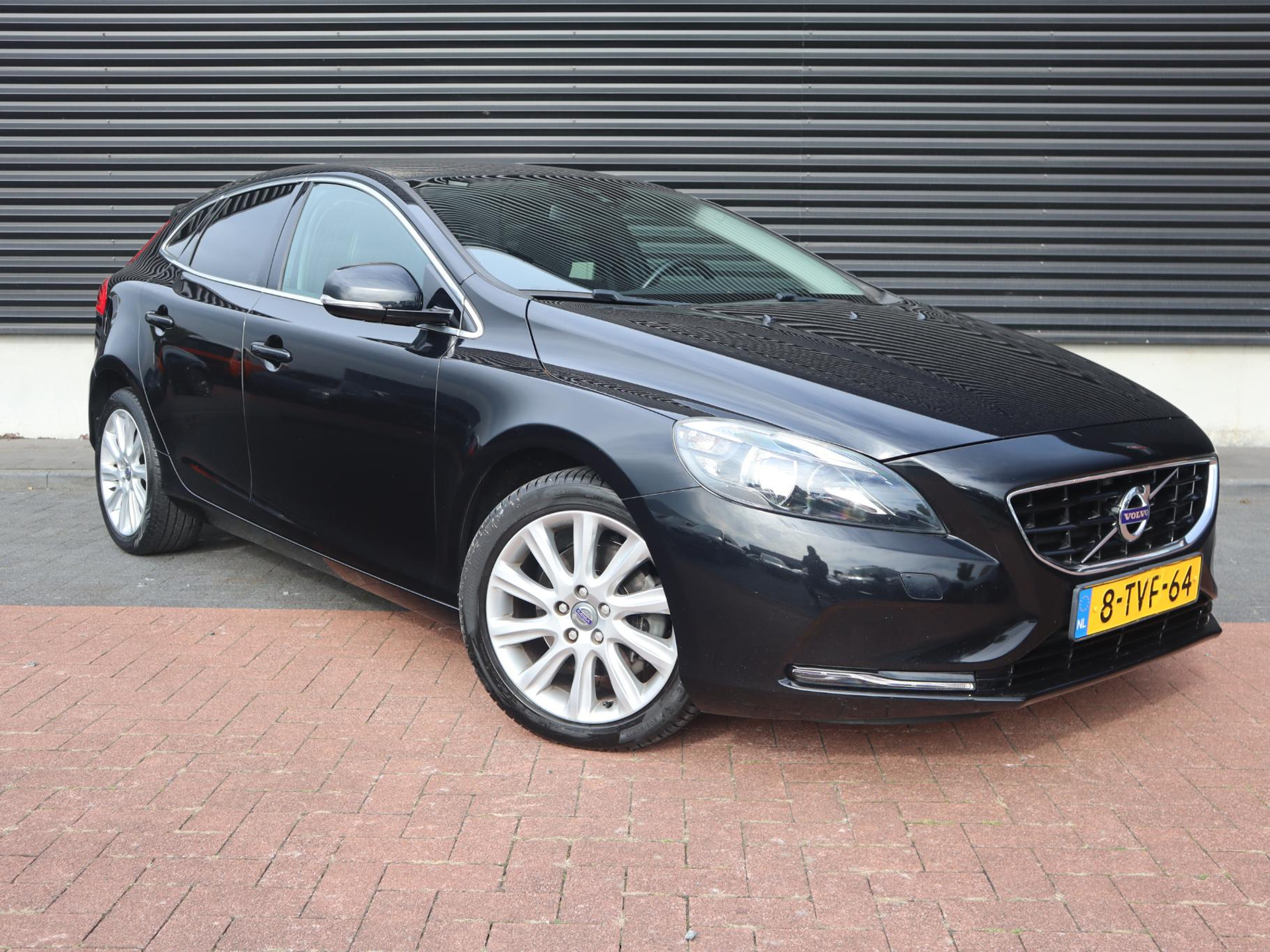 Uitgevoerd in het zwart straalt deze V40 klasse en discretie uit. De strakke lijnen, sportieve details en fraaie lichtmetalen velgen geven de auto een dynamisch en tijdloos karakter. Het interieur is comfortabel en doordacht vormgegeven, met hoogwaardige materialen en een ergonomisch design dat bijdraagt aan een ontspannen rijervaring.