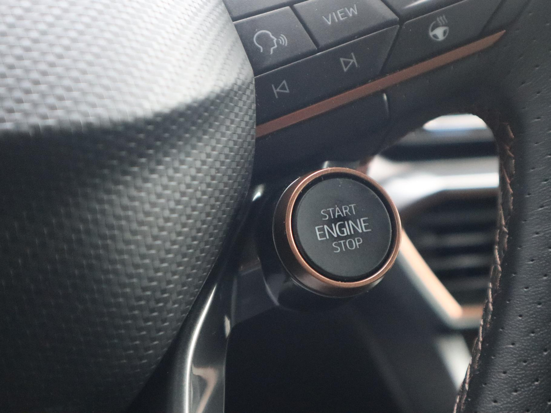 Parkeren gaat eenvoudig dankzij parkeersensoren voor en achter in combinatie met de achteruitrijcamera. De Midnight Black metallic lak in combinatie met de kenmerkende Copper-details geeft de auto een krachtige en stijlvolle uitstraling, die perfect past bij zijn sportieve lijnen.