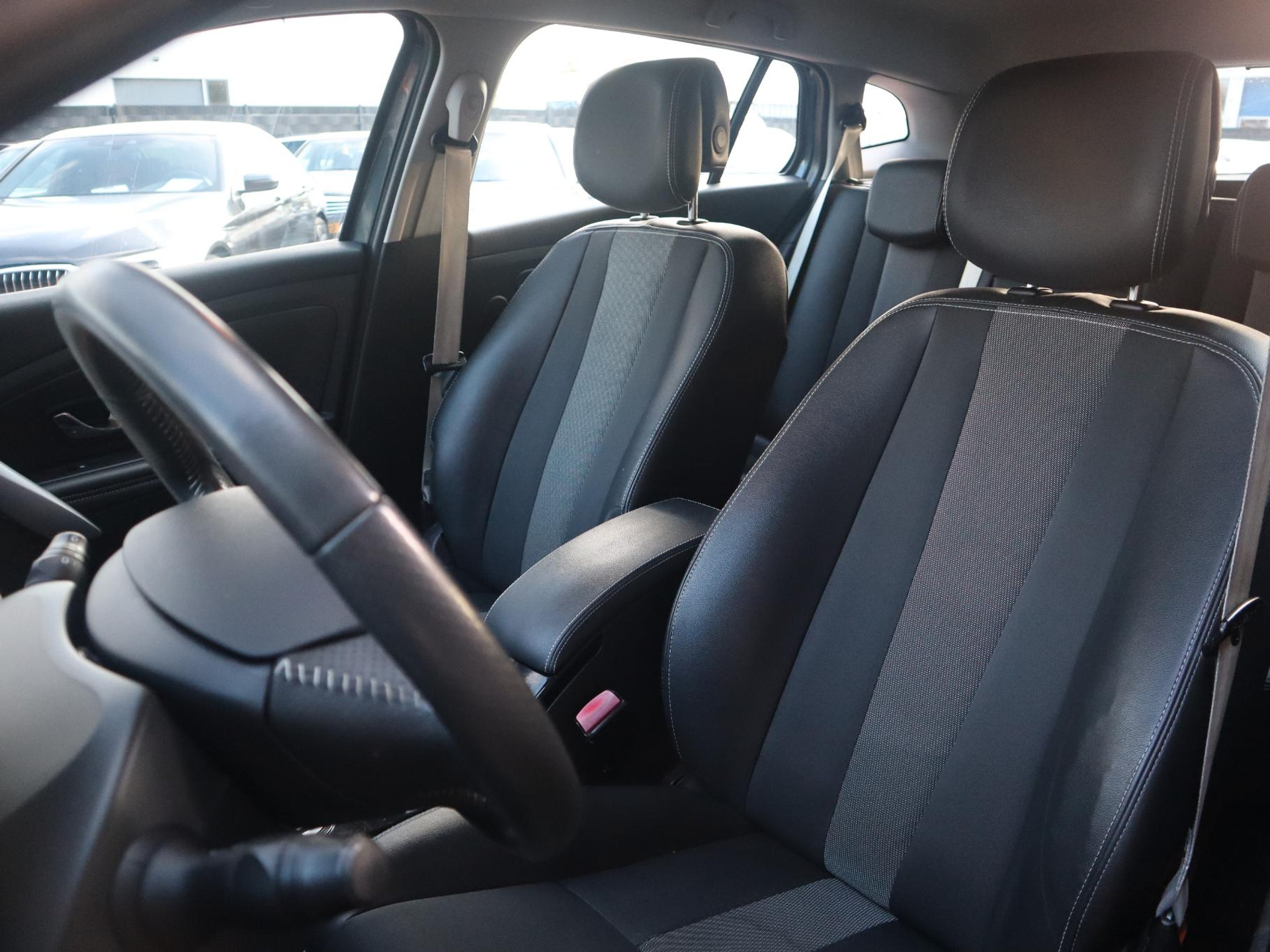 De combinatie van leder en stof op de stoelen geeft het interieur een nette en moderne uitstraling, en zit bovendien gewoon erg lekker.