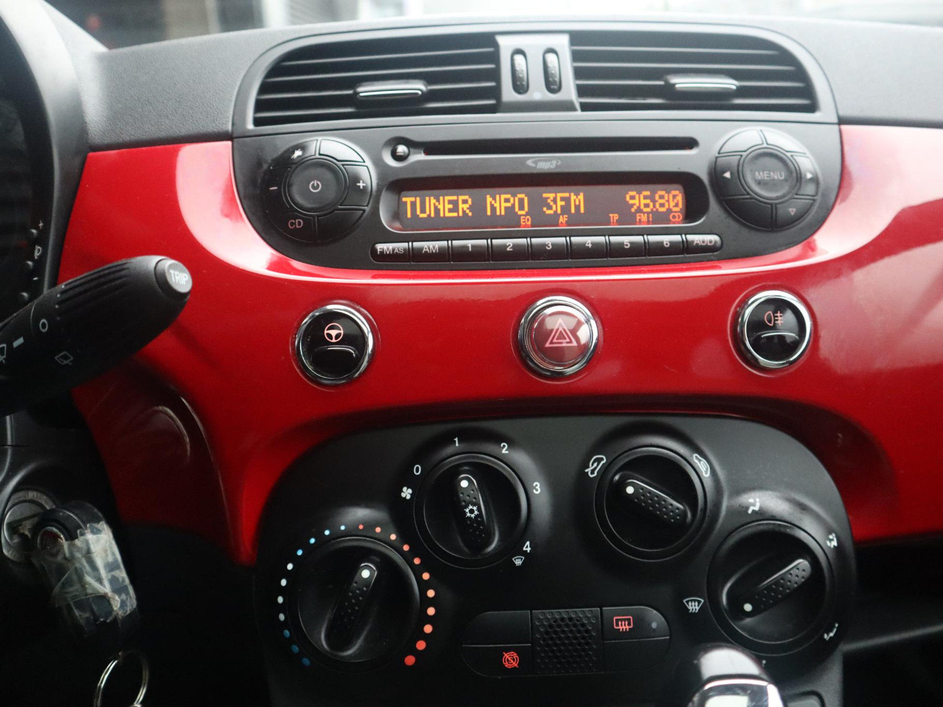 De auto is uitgevoerd in een opvallende rode kleur die perfect past bij het iconische design van de Fiat 500. Het interieur heeft de kenmerkende Lounge-uitrusting, waarbij stijl en comfort mooi samenkomen. Dankzij het grote panoramadak geniet u van een lichte en open sfeer binnenin, terwijl de airco zorgt voor een prettig klimaat tijdens warmere dagen.